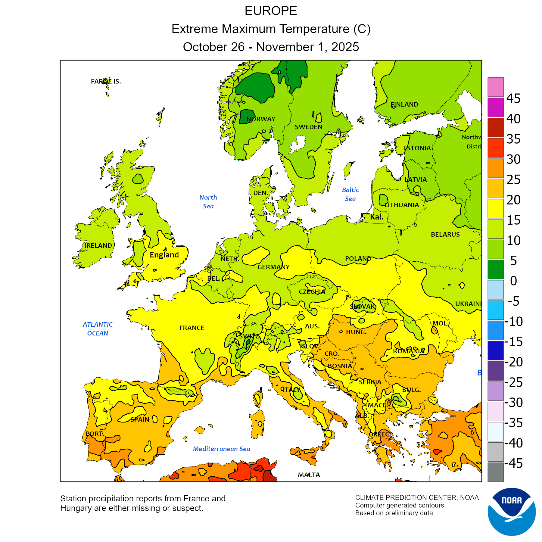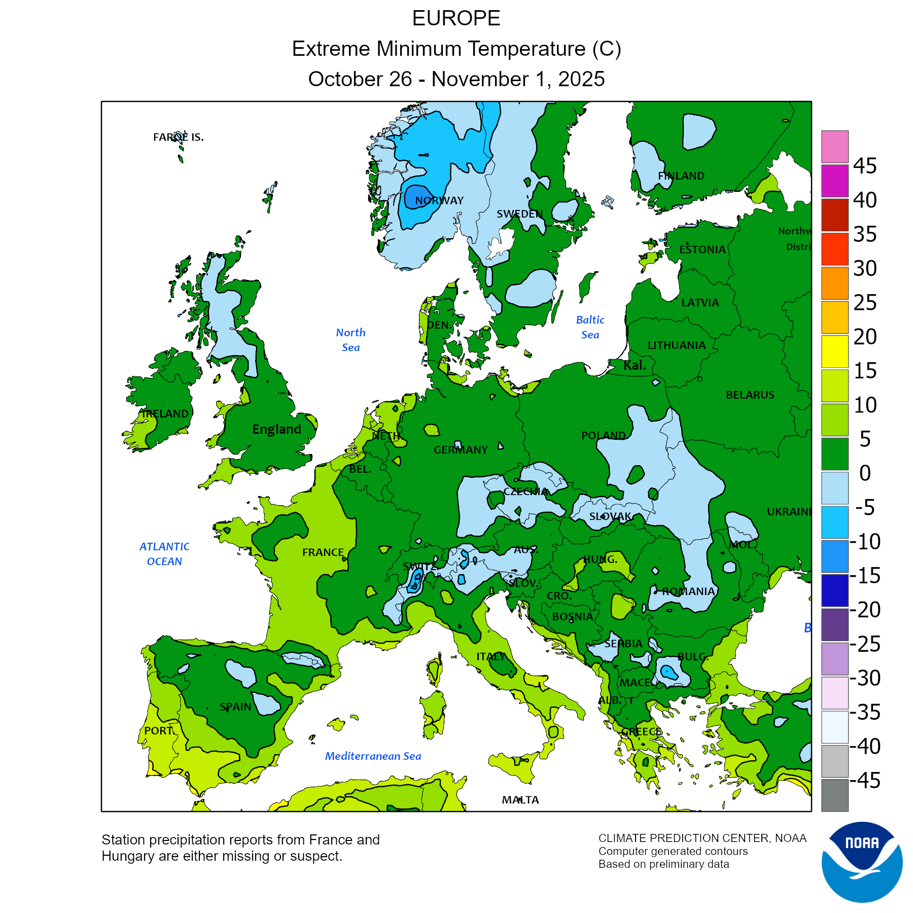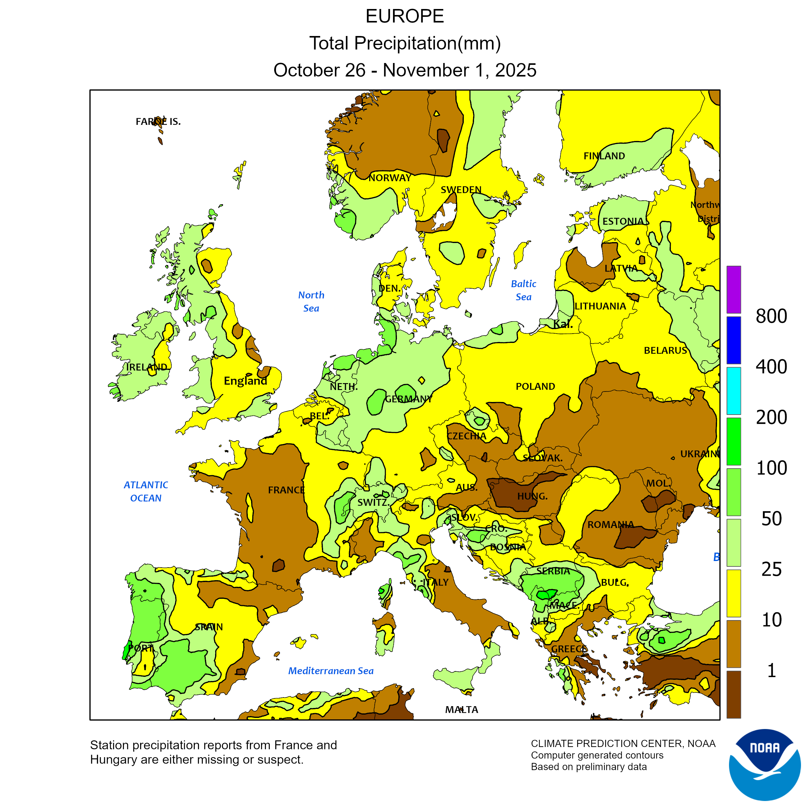 Ultimi rapporti meteo settimanali relativi all'andamento di precipitazioni e temperature.